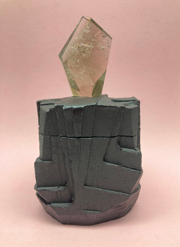 Kurinuki box van zwarte klei, twee keer gestookt waarvan de tweede keer met speciale glazuur in de Raku oven.