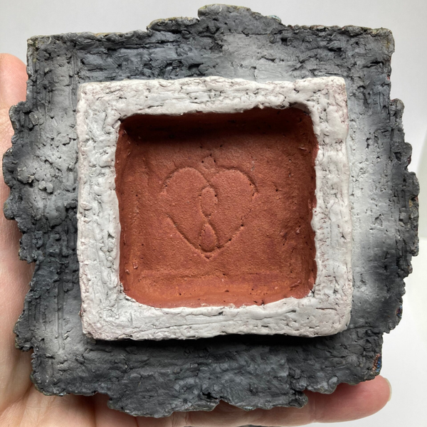 Groei is oneindigKurinuki box van witte klei, twee keer gestookt waarvan de tweede keer met speciale glazuur in de Raku oven