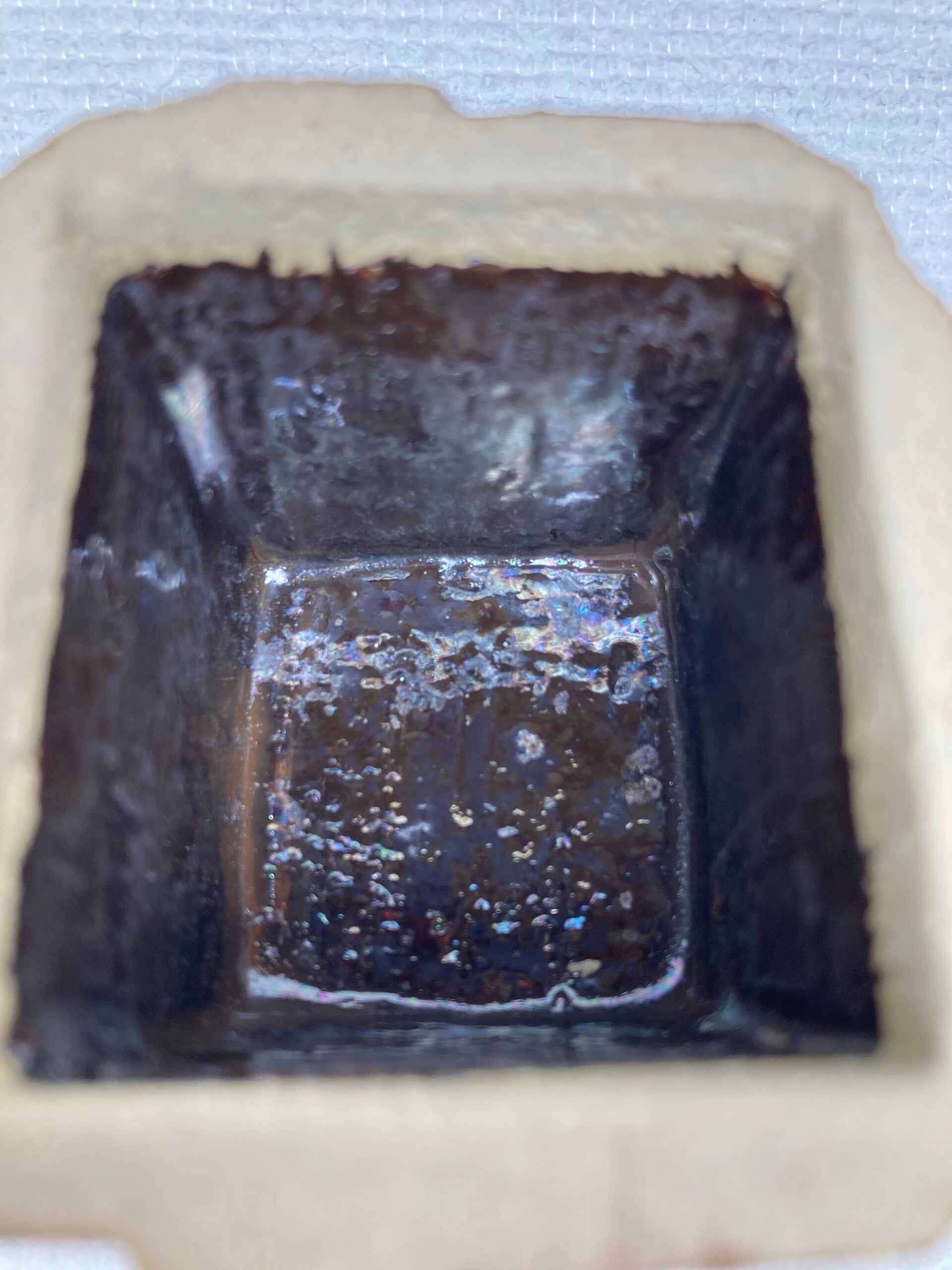 Van buiten en binnen diverse glazuren gelaagd opgebracht.